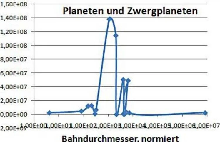 Das Expansionsschema der Planeten im Sonnensystem sieht ähnlich aus, das Maximum befindet sich aber an einer anderen Stelle (Bild 7).