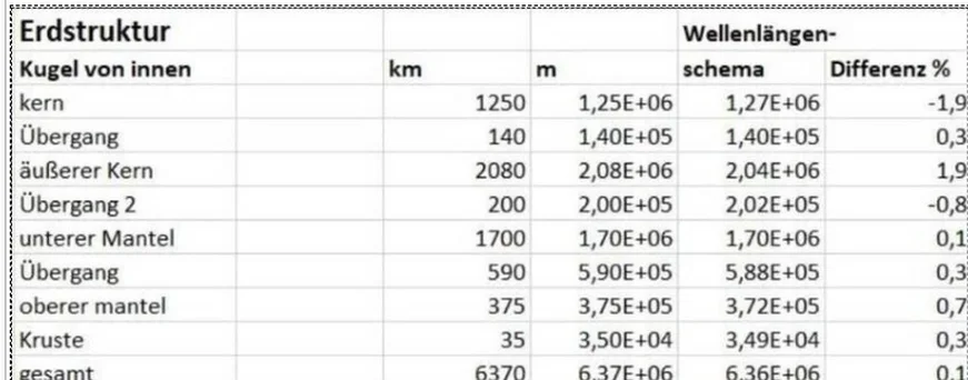 Die Strukturen der Erde folgen streng dem Wellengesetz. Die inneren Strukturen ( Tabelle 10.1) sind außerdem nach der Dichte sortiert. Offenbar gab es dabei einen Konflikt und aus überschüssige Massen, der während der Expansion zur Entstehung des Mondes führte