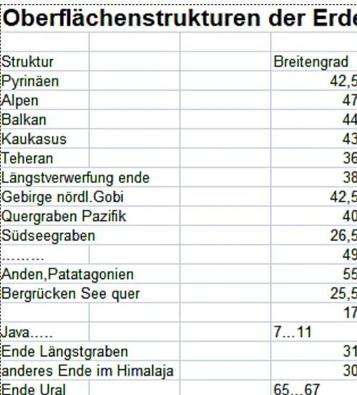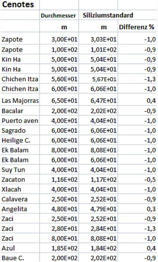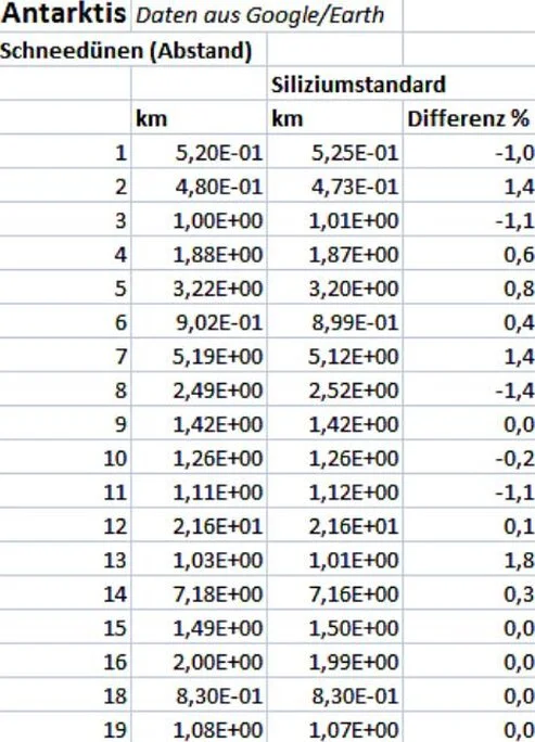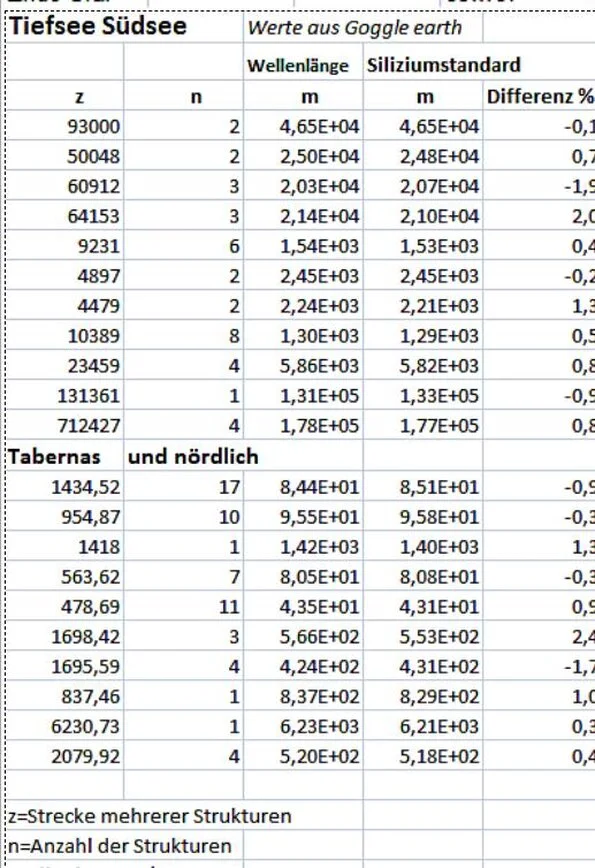 Dank Google Earth kann man Strukturen auf der Erdoberfläche ausmessen. Tabelle 1 zeigt die Messergebnisse einiger Strukturen.