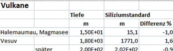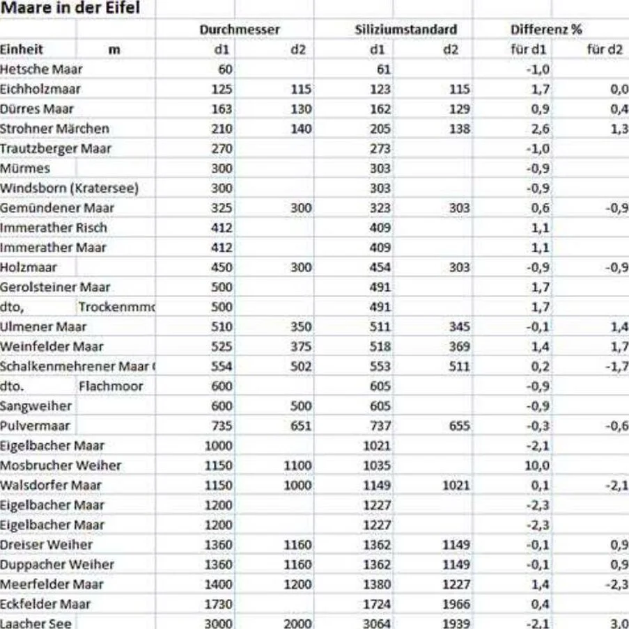 Die Eifel ist ein ehemaliges Vulkangebiet, dessen erloschene Vulkane als Maare bezeichnet werden. Die Durchmesser der Maare sind mit dem Kraterdurchmesser der ehemaligen Vulkane identisch und erlauben deren Einordnung als Wellenstrukturen (Tabelle 4).