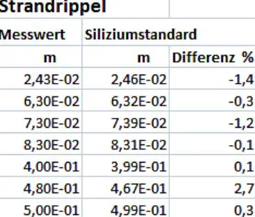Es wurde immer die Strecke mehrerer gut erkennbarer Strukturen gemessen, um den Fehler gering zu halten. Die so erhaltene Strecke wurde dann für die Ermittlung der Wellenlänge durch die Anzahl der Strukturen (Zahl der Wellen) geteilt.