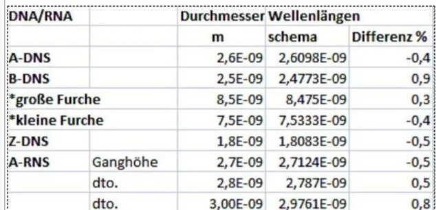 Das Wellengesetz gilt auch für Biopolymere DNA und RNA(Tabelle 3) gelten und ebenso auch für Viren (Tabelle 5), die aus DNA oder RNA aufgebaut sind.