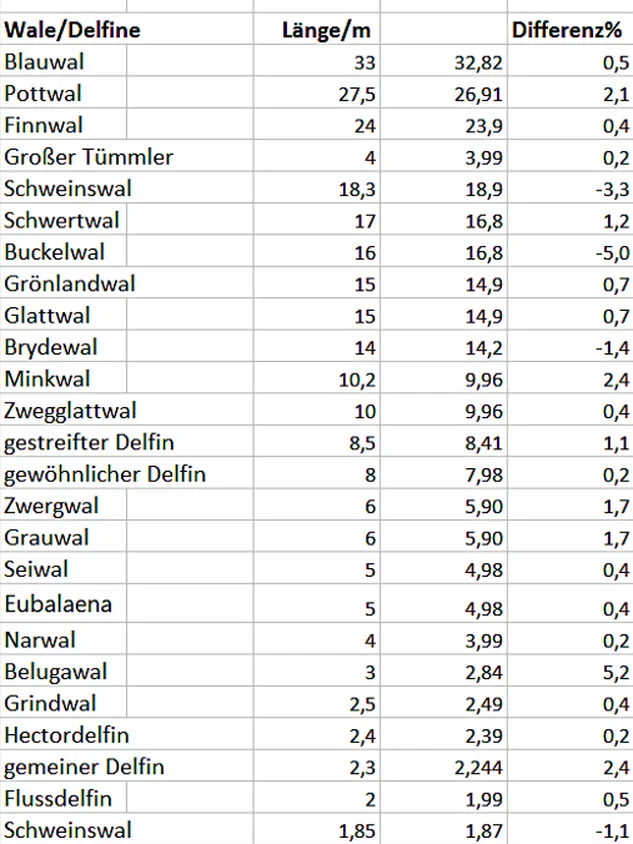 Vermisst man einzelne Körperabschnitte, findet man eine Übereinstimmung mit dem Wellengesetz.
