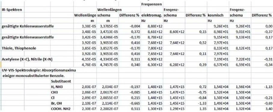 Das Wasserstoffatom emittiert elektromagnetische Strahlung. Weil die Wellenlängen dem Wellenlängengesetz folgen, kann man eine Frequenz berechnen, die das kosmische Frequenzgesetz erfüllen muss. Das ist für die Emissionsspektren gegeben (Tabelle 4). Ist es wirklich möglich, das eine Spektrallinie zwei Frequenzen hat ?