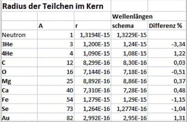 Die Compton - Wellenlänge des Neutrons beträgt stimmt sehr gut mit dem berechneten Radius überein und bestätigt, das das Neutron aus einem Proton besteht, das von einem Elektron umkreist wird.