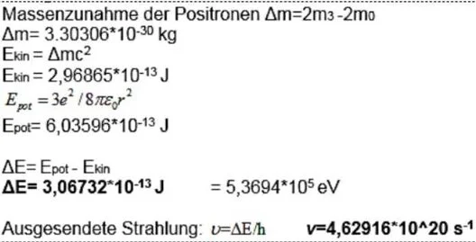 und die Masse der Positronen im Proton m3=2,5647-*10^-30 kg. Die Masse des Zentralteilchens beträgt 1,6674*10^-27 kg.