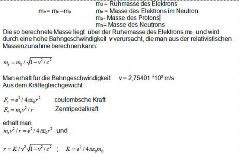den Radius der Elektronenbahn r =1.31933 *10-15 m . Diese Größe ist gleichzeitig der Radius des Neutrons.