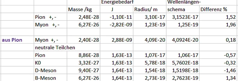 Tabelle 5: Daten von Pionen, Myonen und Mesonen
