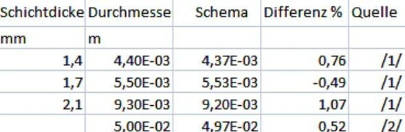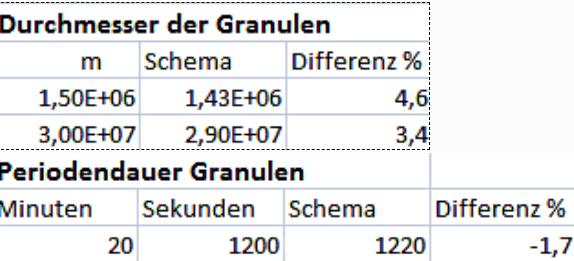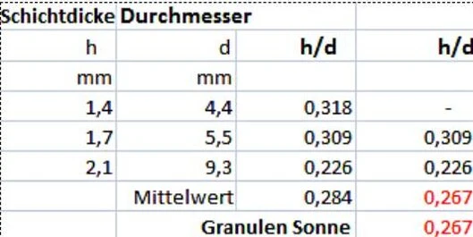 Die Existenz von Benardzellen ist nicht an einen Größenmaßstab gebunden (Tabelle 2 und Tabelle 3). Es scheint eine Abhängigkeit des Durchmessers von der Schichtdicke zu geben (Tabelle 4):