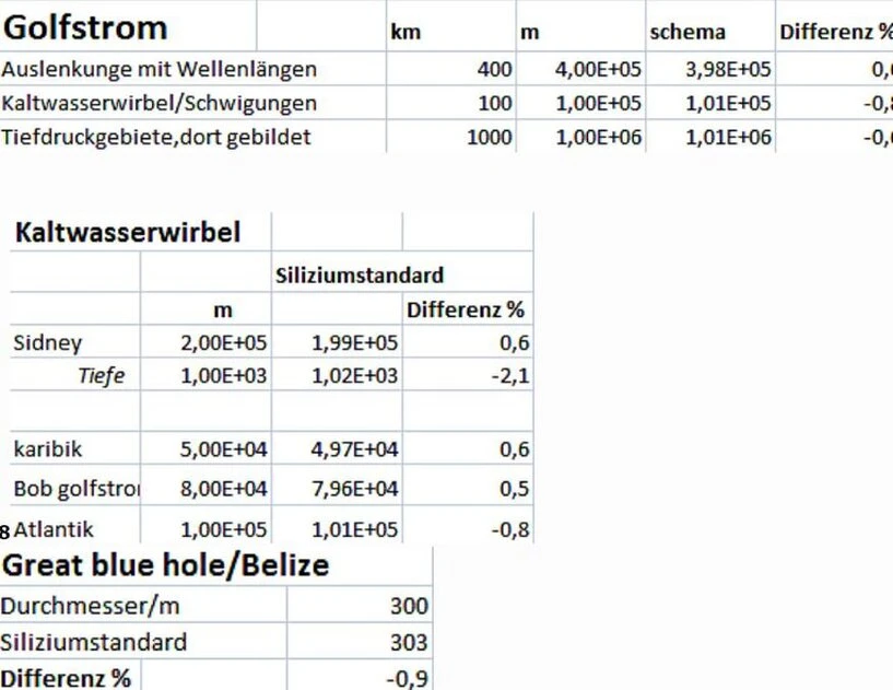 Drehstrukturen gibt es auch im Golfstrom infolge des Temperaturunterschiedes zwischen der Meeresoberfläche und der Tiefsee (Tabelle 7/8).