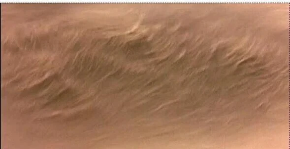 Wellenstrukturen in Strömungen werden selten beobachtet. Bild 5 sind Wellenstrukturen im Wind in der Namib zu sehen. Sie haben eine gut erkennbare Drehung.