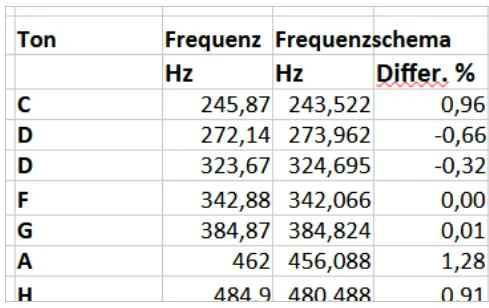 Tabelle 10 enthält die Töne menschlicher Musik. Sie sind im kosmischen Frequenzgesetz zu finden! Das ist nicht zu erwarten, weil Empfinden, "Seele" und Kultur eine dominante Rolle spielen sollten.