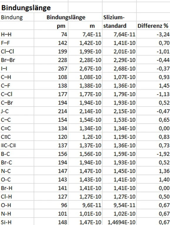 Tabelle 1 Bindungslänge in Molekülen