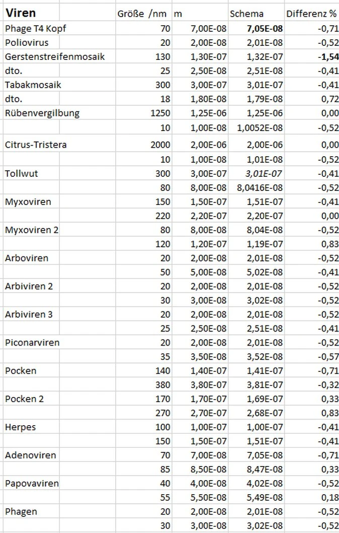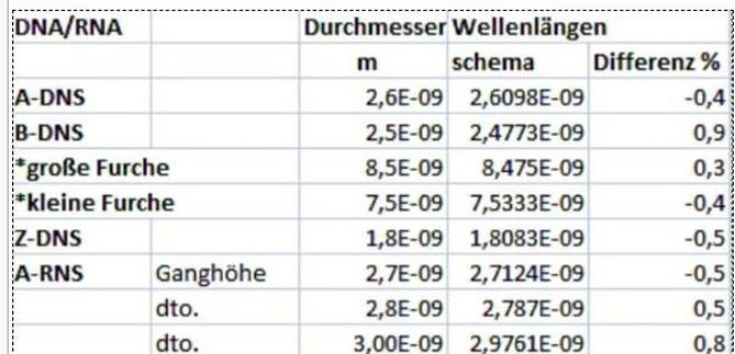 Das Wellengesetz gilt auch für Biopolymere DNA und RNA(Tabelle 3) gelten und ebenso auch für Viren (Tabelle 5), die aus DNA oder RNA aufgebaut sind.