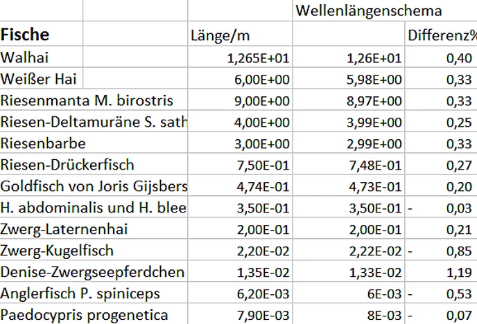 Das Wirken des Wellenlängengesetzes lässt sich sogar bei der Größe von Bakterien nachweisen (Tabelle 4), auch wenn die Datenlage bei den Bakterien sehr dünn ist.
