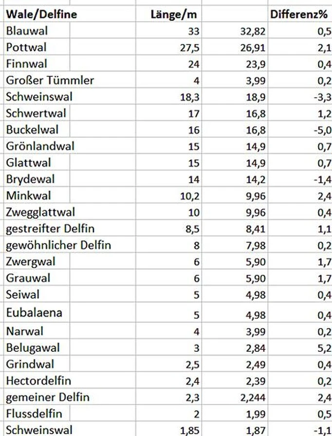 Vermisst man einzelne Körperabschnitte, findet man eine Übereinstimmung mit dem Wellengesetz.